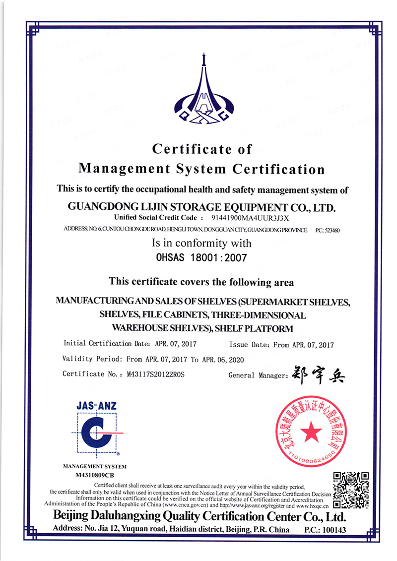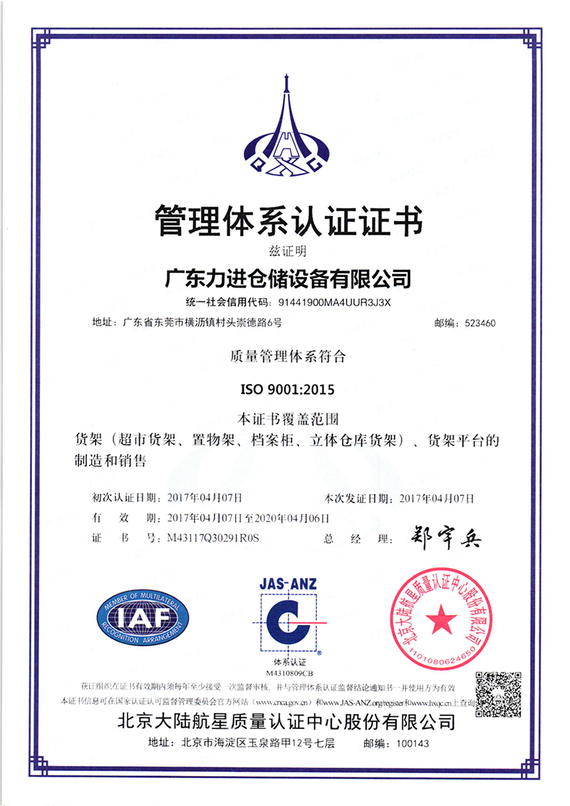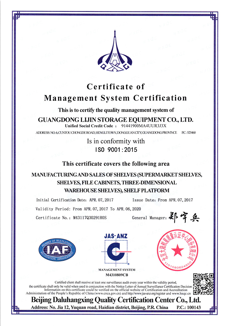 Dgongguan LIJIN dtorage equipment co.,Ltd. (now renamed Guangdong force storage equipment Co., Ltd.) was founded in 2008 07 months, the registered capital of 3 million yuan. After 8 years of development, in October 2016 changed its name to Guangdong Lijin storage equipment Co. Ltd., the registered capital increased to 16 million 800 thousand yuan; business scope: warehouse system and equipment, shelves, storage equipment, steel structure and metal products, plastic products, transportation equipment, tool cabinets, table, shelf, filing cabinets, mobile cabinet forklift, forklift accessories, design, manufacturing, sales, import and export of goods and technology.